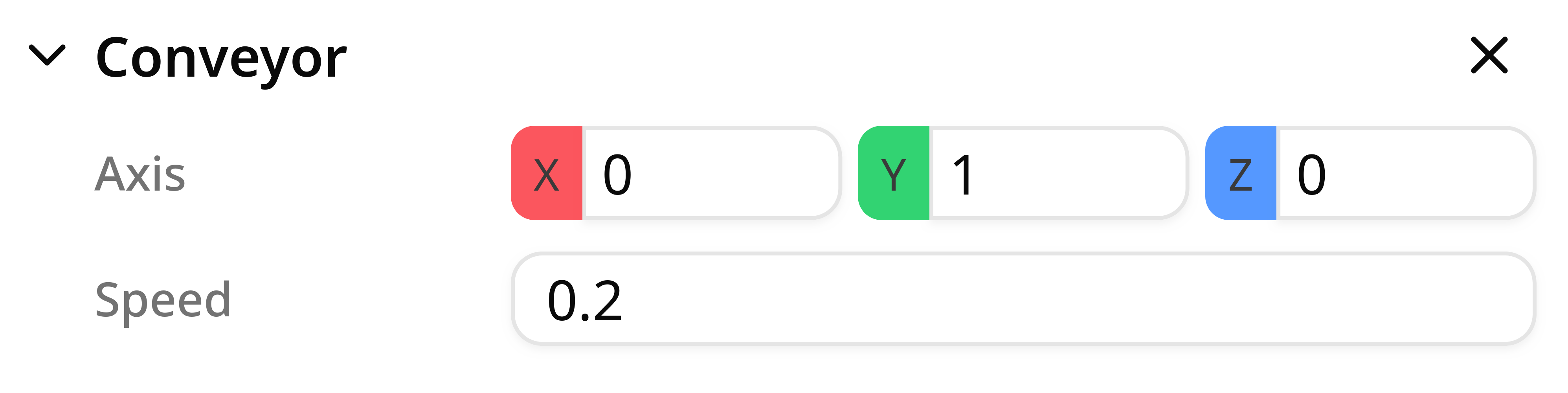 The axis defines the local direction along which movement occurs. The conveyor will push colliding objects along the defined axis.