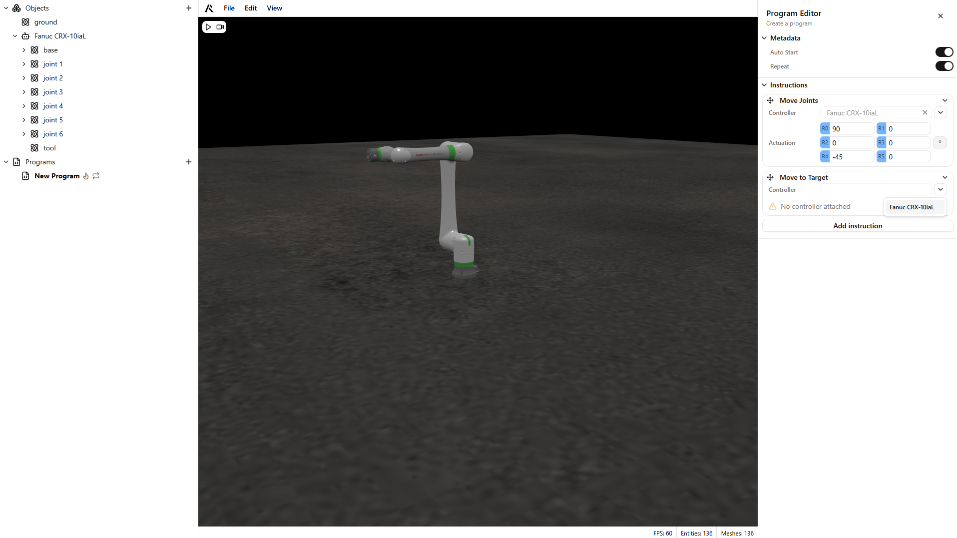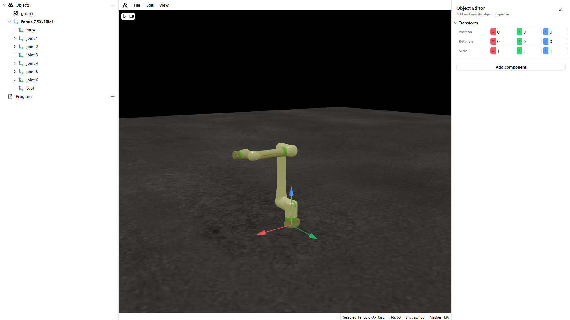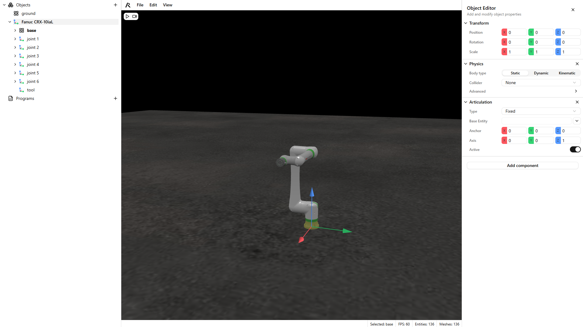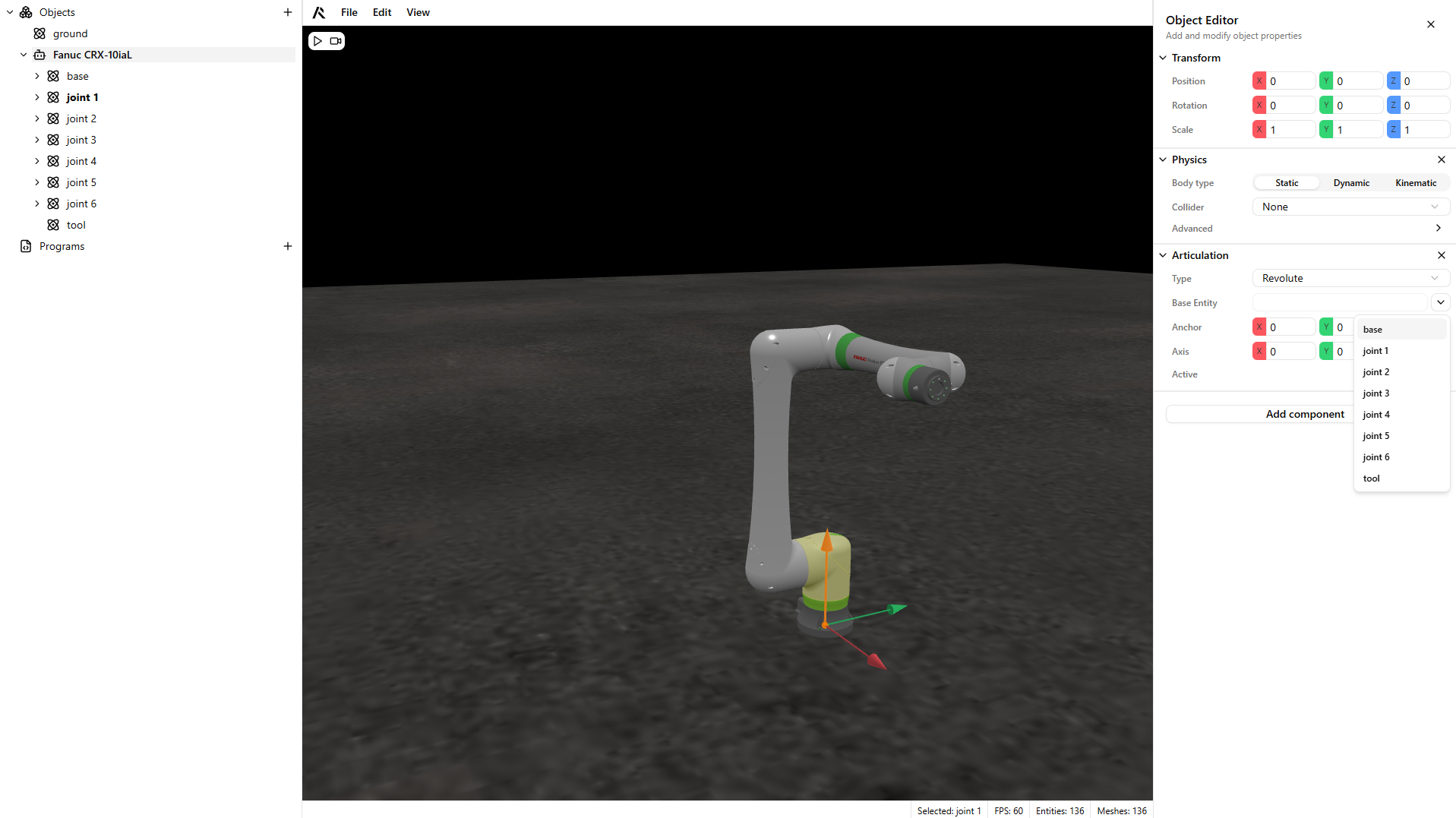 This guide shows how to create a 6-axis collaborative robot (FANUC) for simulating different applications.