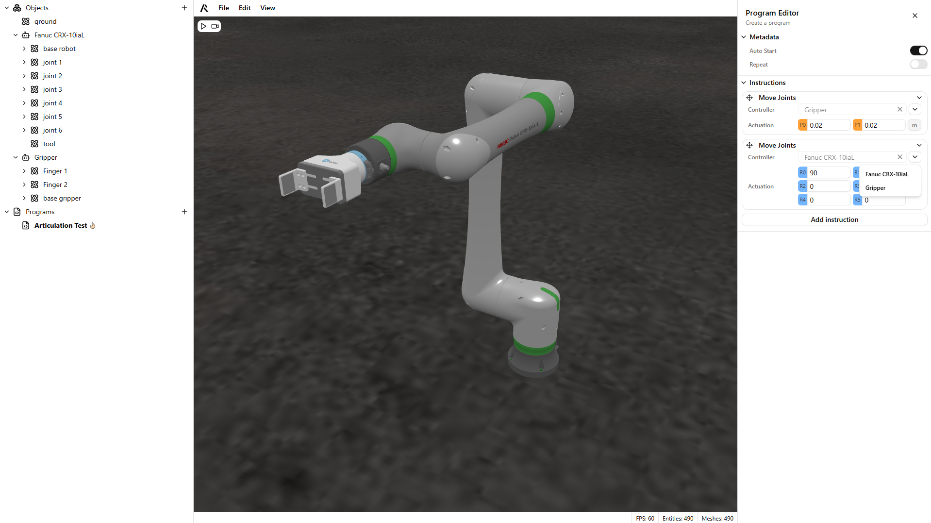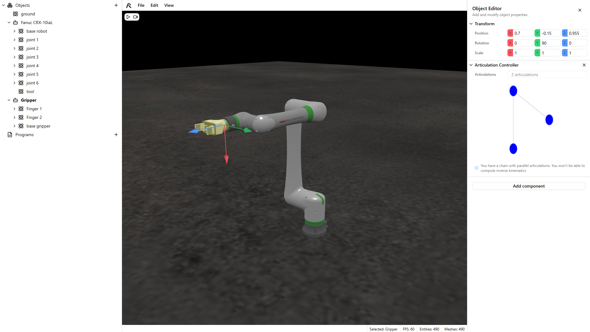 This guide shows how to connect two articulated chains, each with its own articulation controller.