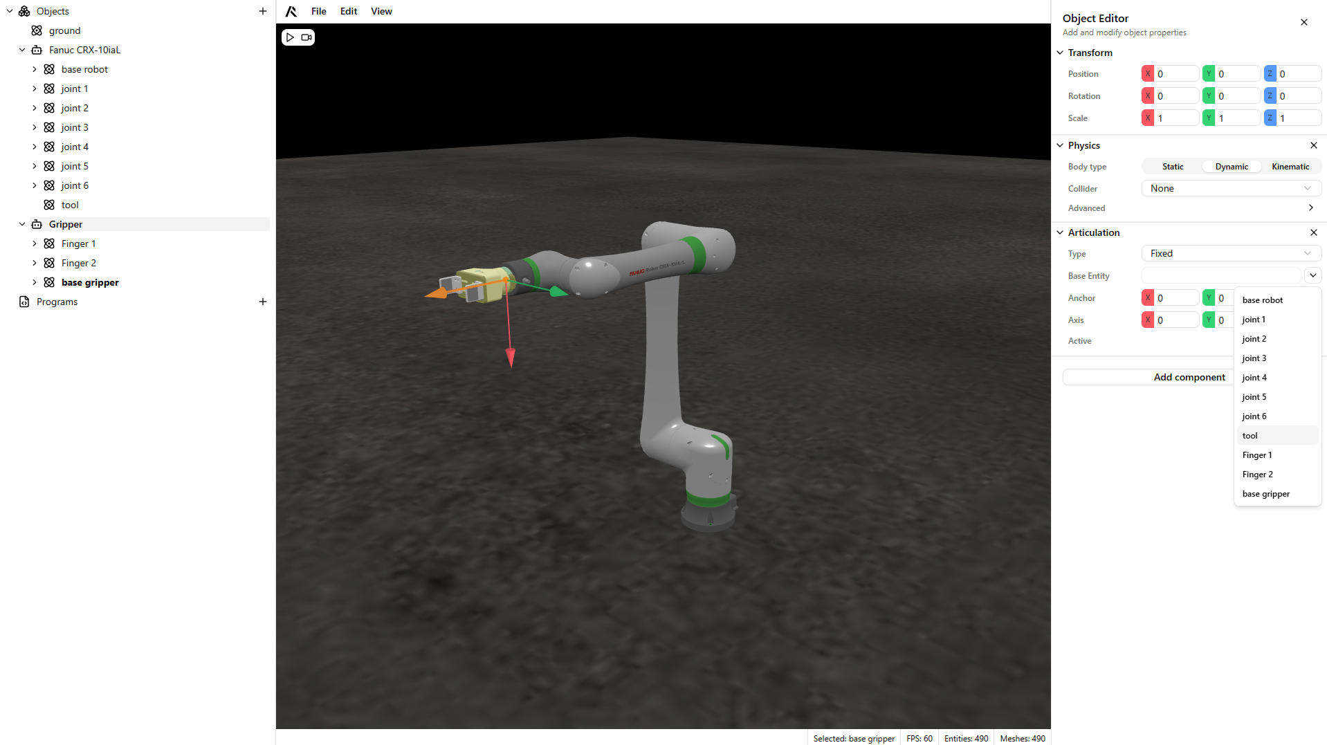 In this example, the 6-axis robot and the gripper from the previous examples are used.