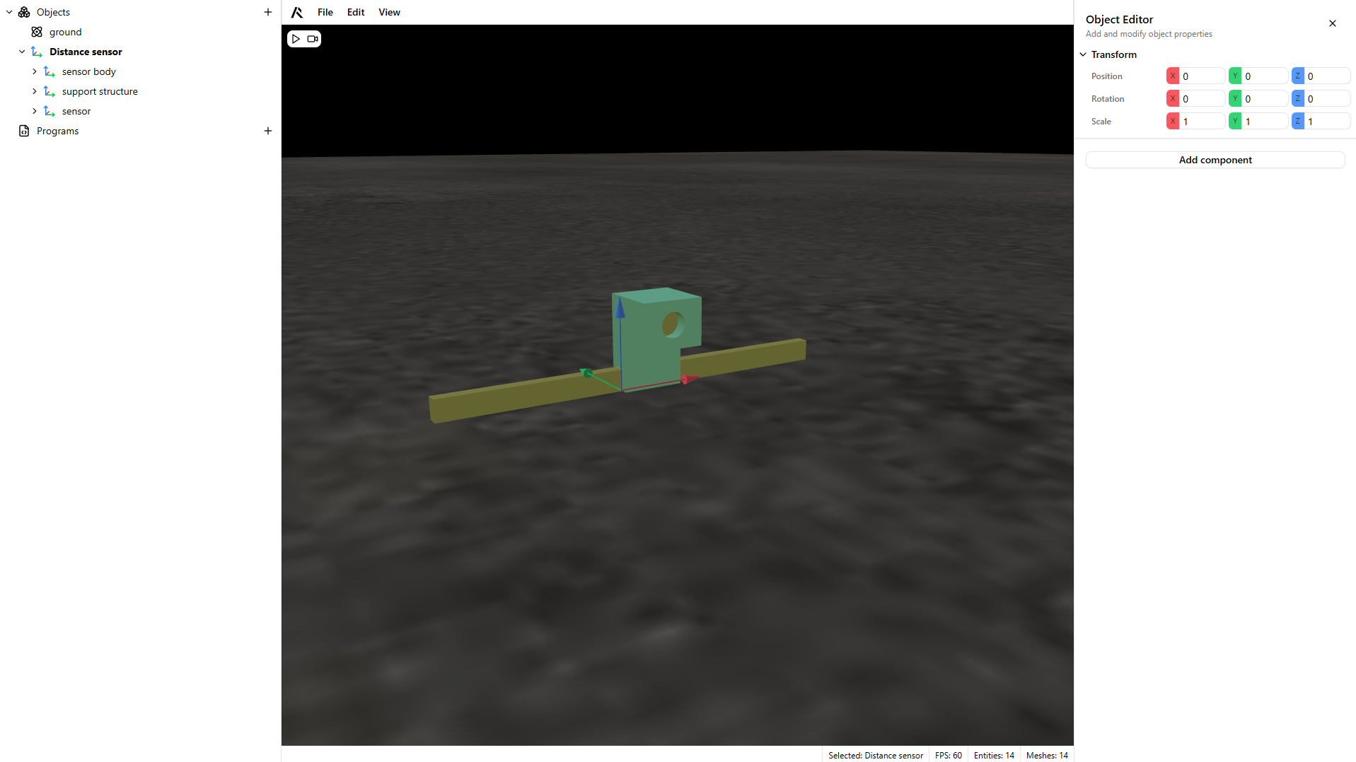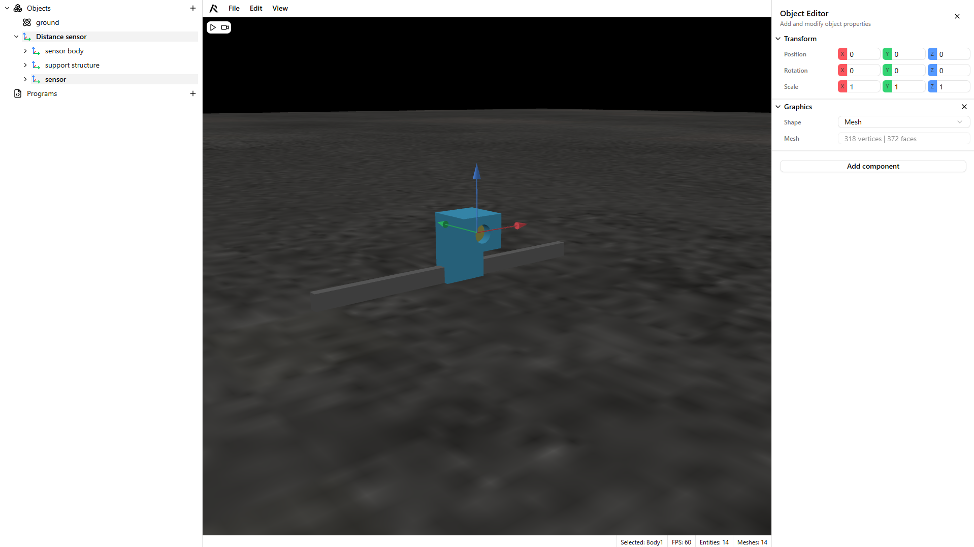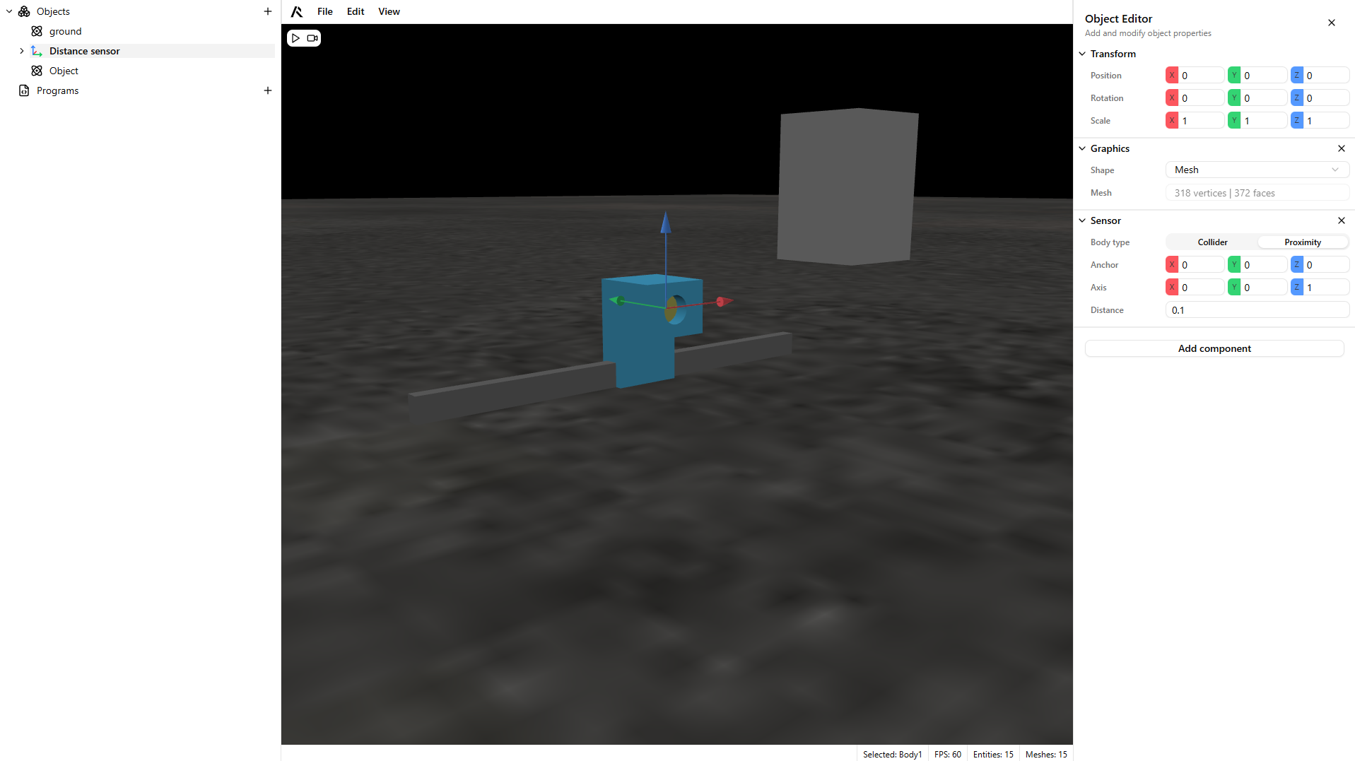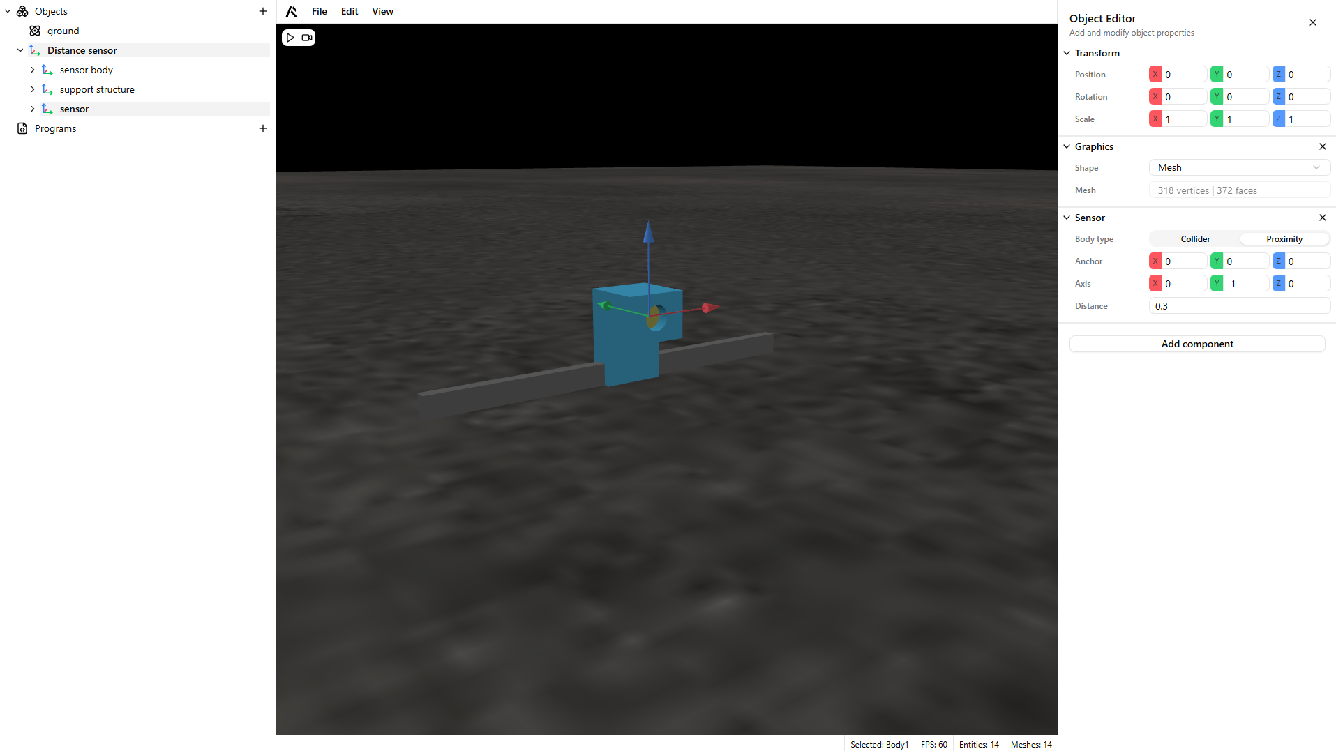 - Add a dynamic part to your scene and play to test the sensor.