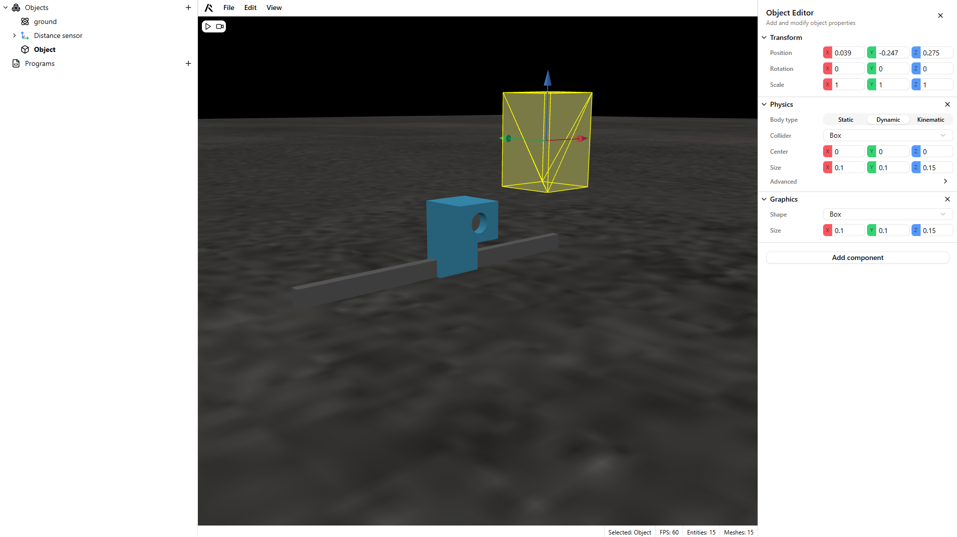 - Create a dynamic component to test the sensor's trigger.
